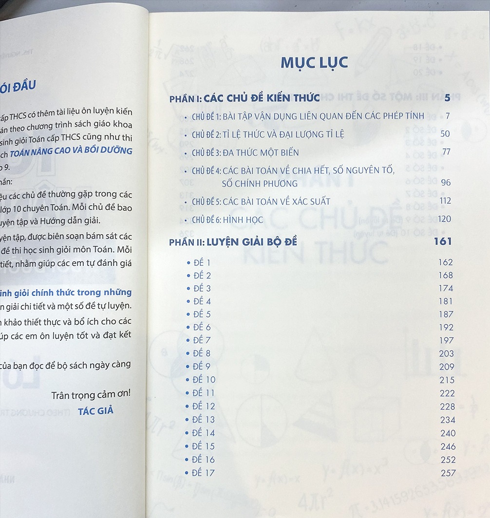 Phần 3: Giới thiệu một số đề thi học sinh giỏi chính thức trong những năm gần đây. Phần này bao gồm cả hướng dẫn giải chi tiết và một số đề tự luyện.Tôi hi vọng bộ sách này sẽ là tài liệu tham khảo thiết thực và bổ ích cho các em học sinh khá, giỏi cấp THCS, góp phần giúp các em ôn luyện tốt và đạt kết quả cao trong các kì thi.