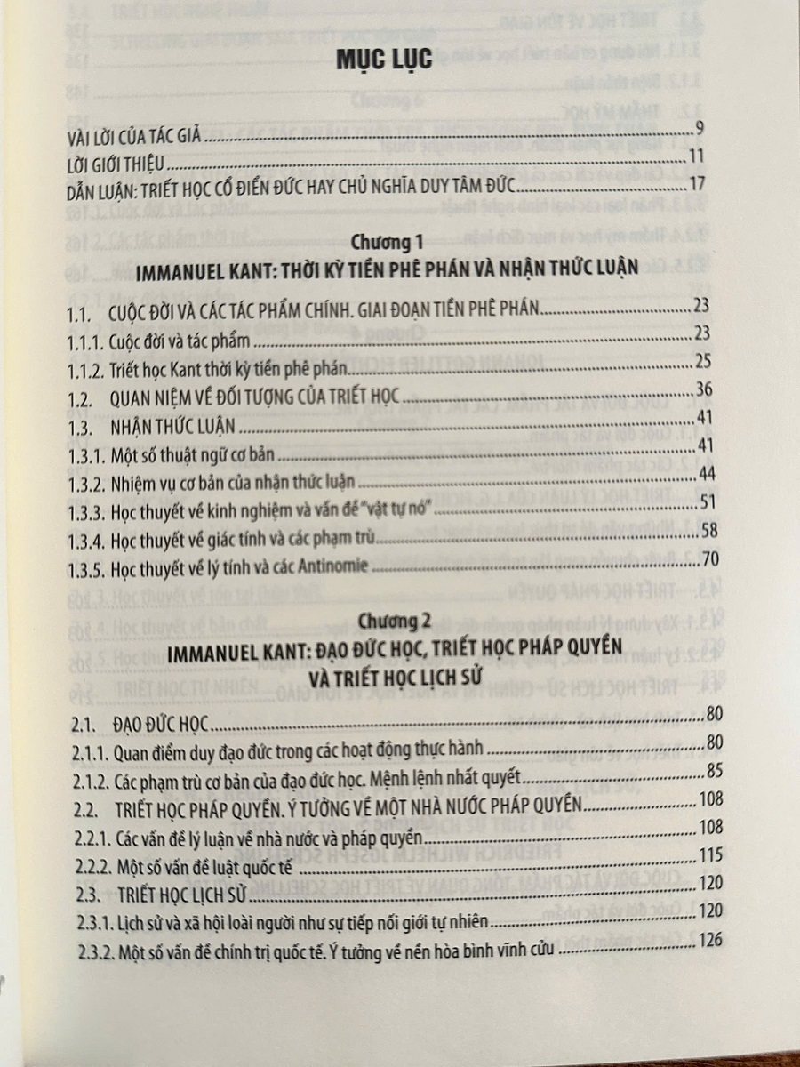 Khác với nhiều công trình cho tới nay đều trình bày tư tưởng của các triết gia đa phần một cách gián tiếp, bằng ngôn ngữ của nhà nghiên cứu thì cuốn "Chủ nghĩa duy tâm Đức - Từ I. Kant tới G.W.F. Hegel" ra đời vừa như một giáo trình, vừa như một công trình chuyên khảo. Cuốn sách gồm 9 chương, mỗi chương được biên soạn công phu về các quan điểm của từng triết gia như I. Kant, J.G. Fichte, F.W.J. Schelling, G.W.F. Hegel cùng nhiều trích dẫn từ nguyên tác. Qua đó, bạn đọc có cơ hội tiếp cận tới tư tưởng của các triết gia một cách sống động nhất.