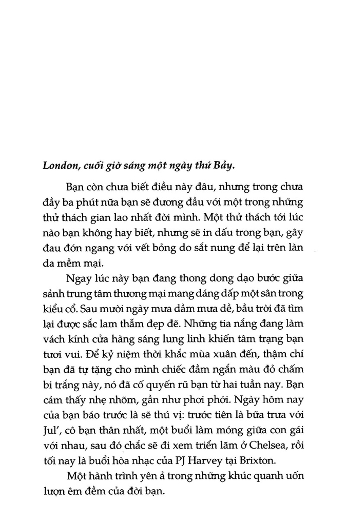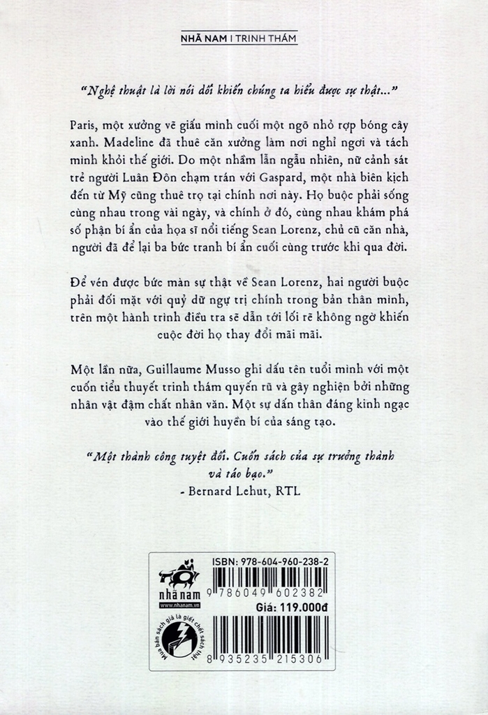 Một lần nữa Guillaume Musso ghi dấu tên tuổi mình với một cuốn tiểu thuyết trinh thám quyến rũ và gây nghiện bởi những nhân vật đậm chất nhân văn. Một sự dấn thân đáng kinh ngạc vào thế giới huyền bí của sáng tạo.