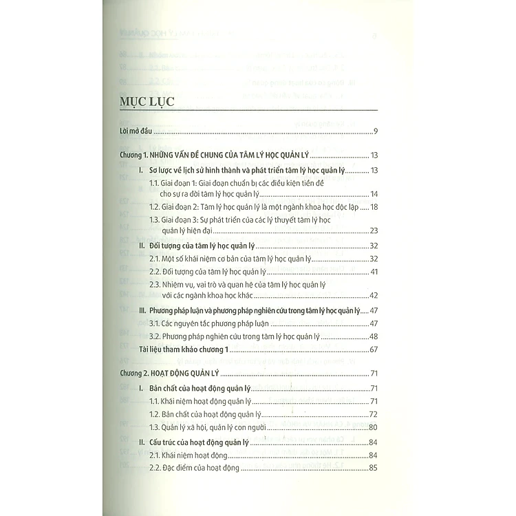 Chương 1. Những vấn đề chung của Tâm lý học quản lý ( Chương này làm rõ các vấn đề sau: Sơ lược vài nét về lịch sử hình thành và phát triển Tâm lý học quản lý; các khái niệm cơ bản của tâm lý học quản lý: quản lý, lãnh đạo, tâm lý học quản lý, đối tượng, nhiệm vụ, vai trò của tâm lý học quản lý, quan hệ tâm lý học quản lý với các ngành khoa học khác và các phương pháp nghiên cứu trong Tâm lý học quản lý.