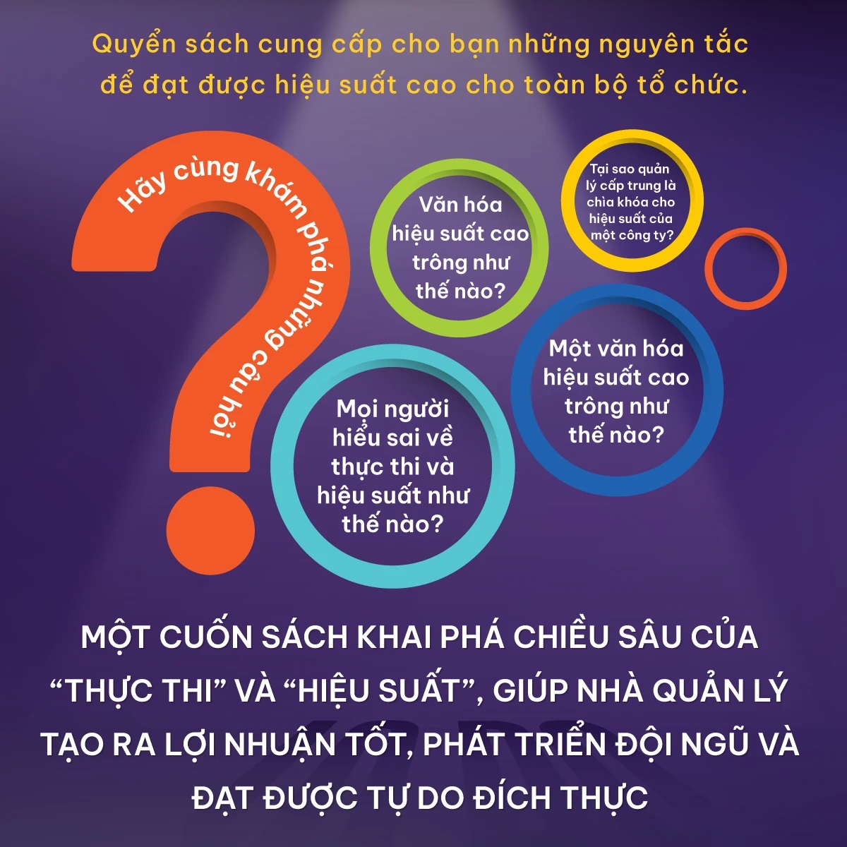 Cuốn sách này giúp độc giả quay trở lại những điều cốt lõi nhất của thực thi và cung cấp cho độc giả những nguyên tắc để đạt được hiệu suất cao cho toàn bộ tổ chức. Hãy cùng khám phá những câu hỏi: