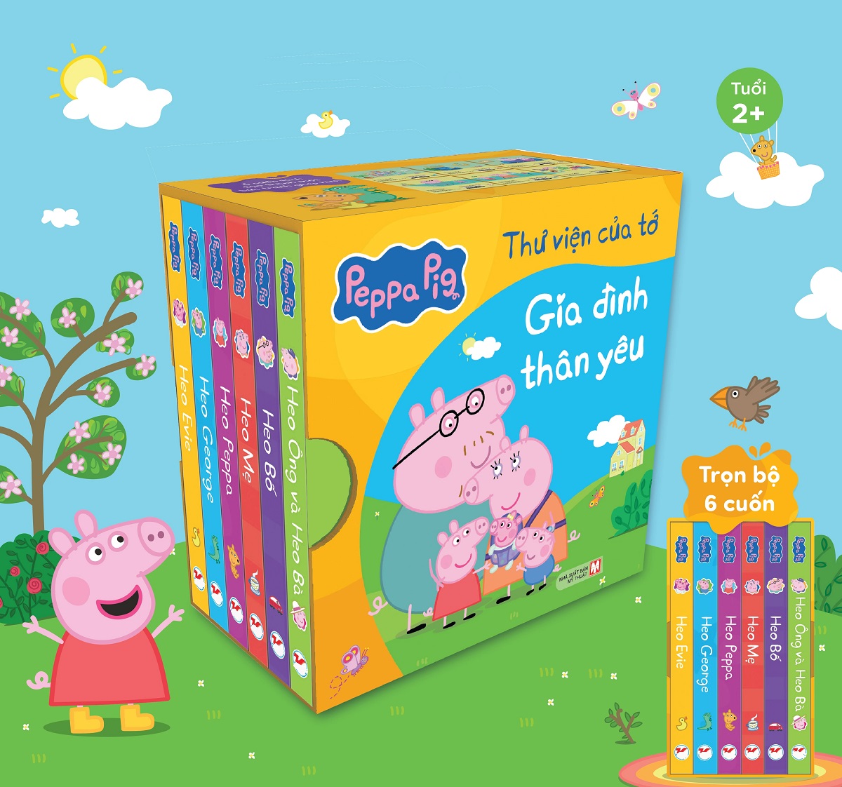 PEPPA PIG – Thư viện của tớ: Gia đình thân yêulà một bộ sách nhỏ xinh gồm 6 cuốn sách về gia đình Heo Peppa, đựng bên trong một chiếc hộp cứng cáp, tiện dụng, rất phù hợp để trở thành một món quà cho bé yêu. Chiếc hộp nhỏ xinh để bé có thể tự tin mang theo cả gia đình Peppa đi khắp thế gian, để bé rèn luyện tính tự lập cũng như bắt đầu hành trình làm bạn với sách từ sớm.