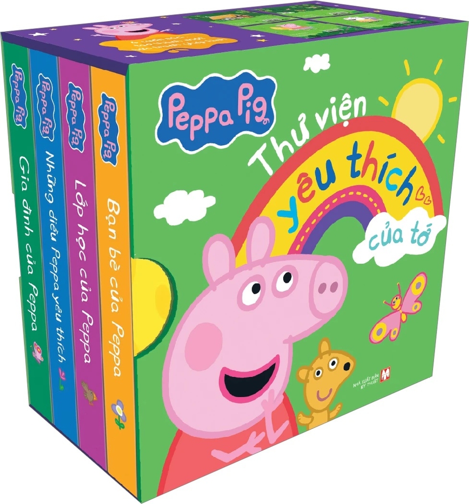 Bộ hộp này bao gồm 4 cuốn truyện tranh: Gia đình của Peppa, Bạn bè của Peppa, Lớp học của Peppa và Những điều Peppa yêu thích. Bộ sách sẽ giúp bé tìm hiểu mọi điều xung quanh nhân vật Heo Peppa như gia đình yêu thương, bạn bè vui nhộn và những sở thích đáng yêu của Peppa đấy! Bộ sách thích hợp cho trẻ từ 2 tuổi.
