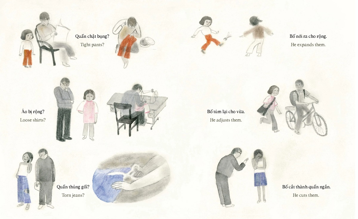 Với tác phẩm mới nhất này, Bùi Phương Tâm kể lại câu chuyện gia đình đậm tính cá nhân nhưng vẫn có sức lan toả to lớn. Câu chuyện mở đầu bằng một thắc mắc: “Tôi không hiểu vì sao Bố luôn giữ tất tần tật mọi thứ.” Những trang sách tiếp theo, người đọc được ngắm nhìn hai thế giới khác biệt: thế giới màu xám chất chứa thật nhiều những món đồ cũ của người bố; và thế giới đầy màu sắc, chỉn chu của người con gái. Khoảng cách thế hệ được tác giả diễn tả tinh tế và nhẹ nhàng, rồi cũng bằng sự nhẹ nhàng, tinh tế thông qua nhân vật bé Na mà khoảng cách ấy dần được rút ngắn. Khi tới trang sách cuối cùng, thắc mắc của ngưởi con đã được lý giải: “Và tôi chợt nhận ra vì sao Bố luôn giữ tất tần tật mọi thứ” – một câu văn gần như lặp lại trang mở đầu, gợi mở cho độc giả tự ngẫm nghĩ, tự tìm hiểu nguyên nhân.