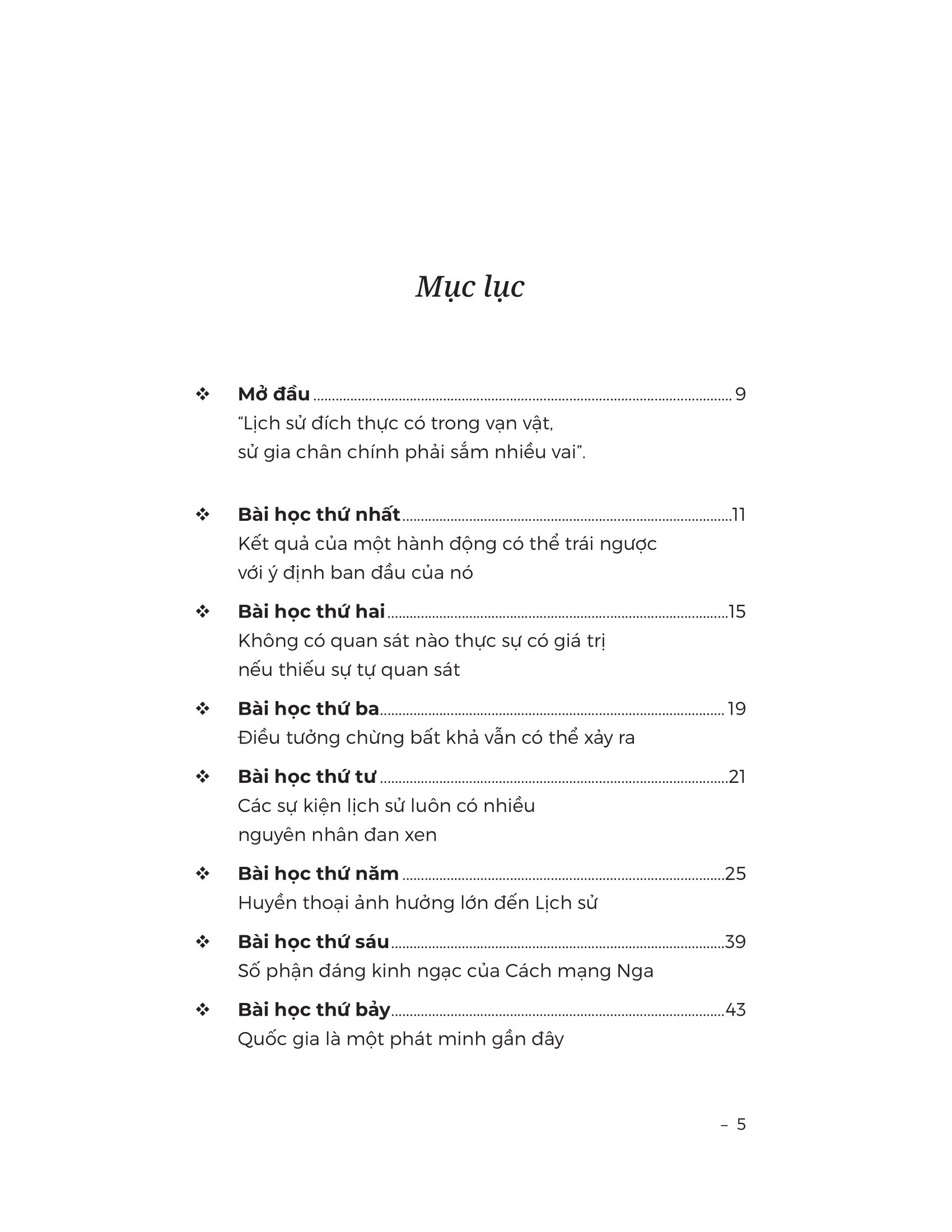 Không kể lại lịch sử theo lối biên niên quen thuộc, cuốn sách là tập hợp 16 “bài học” ngắn gọn nhưng sắc sảo, nơi Morin suy tư về bản chất của tiến trình lịch sử. Từ chiến tranh, cách mạng cho đến sự trỗi dậy và sụp đổ của các đế chế, ông chỉ ra rằng lịch sử không vận hành theo những quy luật thẳng băng hay tất định. Ngược lại, nó luôn chứa đựng những bất trắc, nghịch lý và hệ quả ngoài dự tính: điều tưởng chừng không thể vẫn có thể xảy ra, còn những ý định tốt đẹp đôi khi lại dẫn đến kết quả trái ngược.