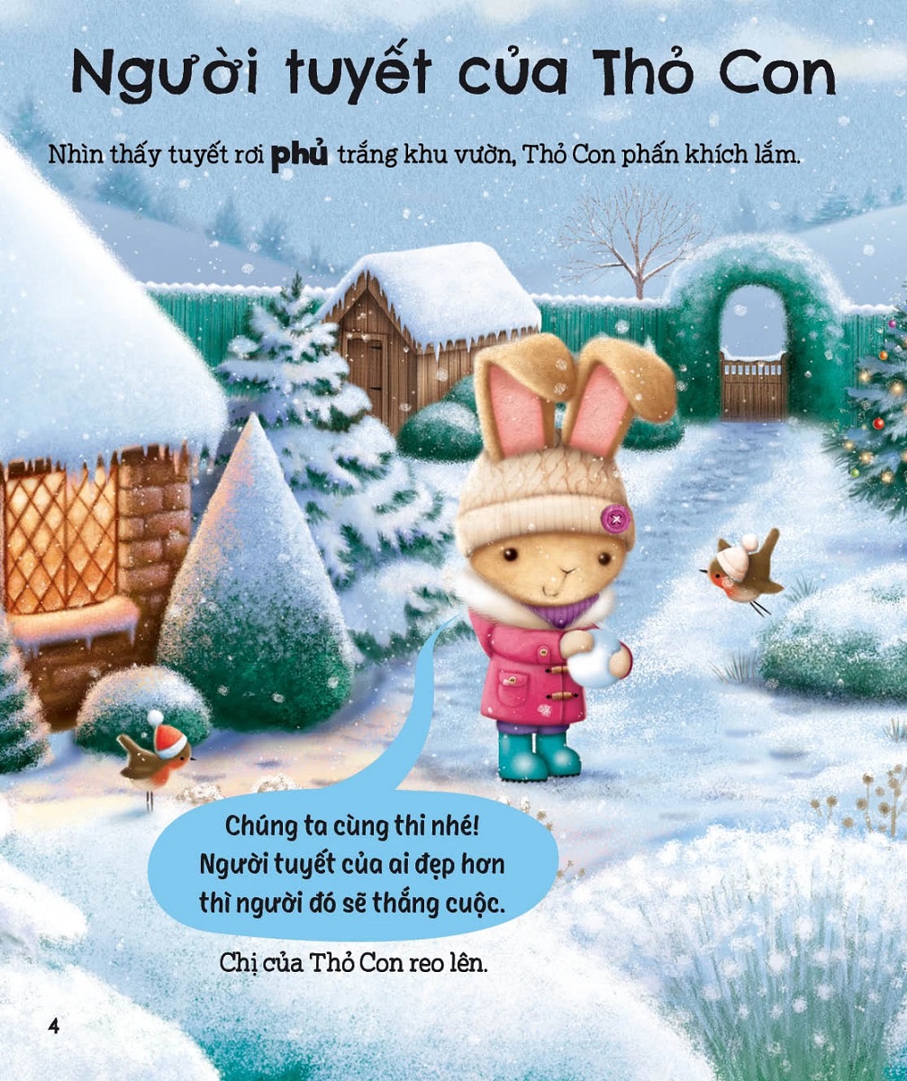 Trong cuốn sách này, bạn đọc sẽ được gặp gỡ những nhân vật hết sức đáng yêu như Thỏ Con, Chuột Chũi, Hải Cẩu, anh em Gấu Con hay Thỏ Lon Ton. Mỗi câu chuyện là một cuộc phiêu lưu thú vị lạc vào thế giới tuyết phủ trắng xóa, hay là những cuộc vui chơi vang rộn tiếng cười cùng bạn bè dưới trời tuyết rơi.