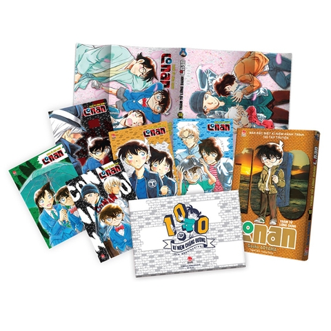 Nhân dịp kỉ niệm 65 năm thành lập, NXB Kim Đồng đã dành rất nhiều sự đầu tư, chăm chút cho tập truyện thứ 100 về Conan với 3 ấn bản cùng lúc được phát hành. Trong đó có Bản Đặc biệt kèm quà tặng. Lần đầu tiên Conan có bìa áo, và được nâng cấp lên chất liệu Metalize ánh kim mờ, cùng thiết kế khác biệt so với bản gốc. Đi kèm sẽ là set quà tặng gồm 05 chiếc postcard với minh họa hoàn toàn mới từ tạp chí Shonen Sunday, lồng trong phong bao Logo kỉ niệm. Cùng một chiếc bìa áo độc quyền, in 5 màu tươi sáng. Bản đặc biệt chỉ in 1 lần duy nhất, nhưng với số lượng khủng dành cho tất cả các Fan!!