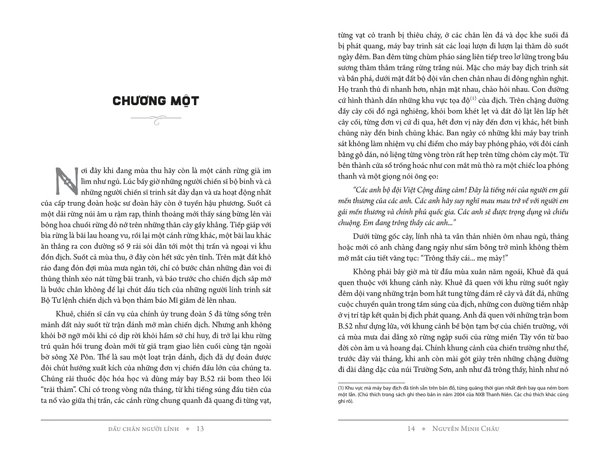 Được xem là một trong những tác phẩm dấu ấn của văn học cách mạng Việt Nam trước 1975, với DẤU CHÂN NGƯỜI LÍNH, “Nguyễn Minh Châu đã miêu tả được chân thực người lính của thời kì chống Mĩ cứu nước. Họ tiếp tục truyền thống dũng cảm, sẵn sàng hi sinh vì Tổ quốc của anh vệ quốc quân, anh giải phóng quân…” - GS. Hà Minh Đức.